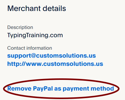 Step 6: Scroll down and click on "Remove PayPal as payment method".